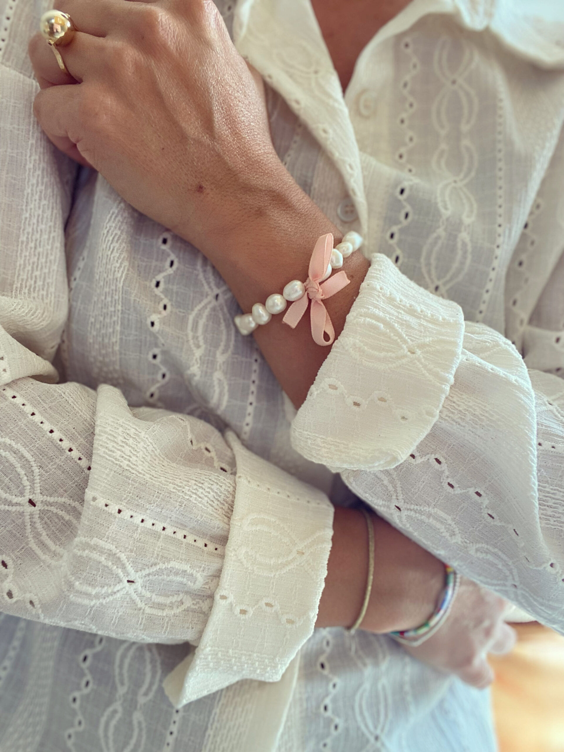 Couleur : blanc nacré, rose clair
